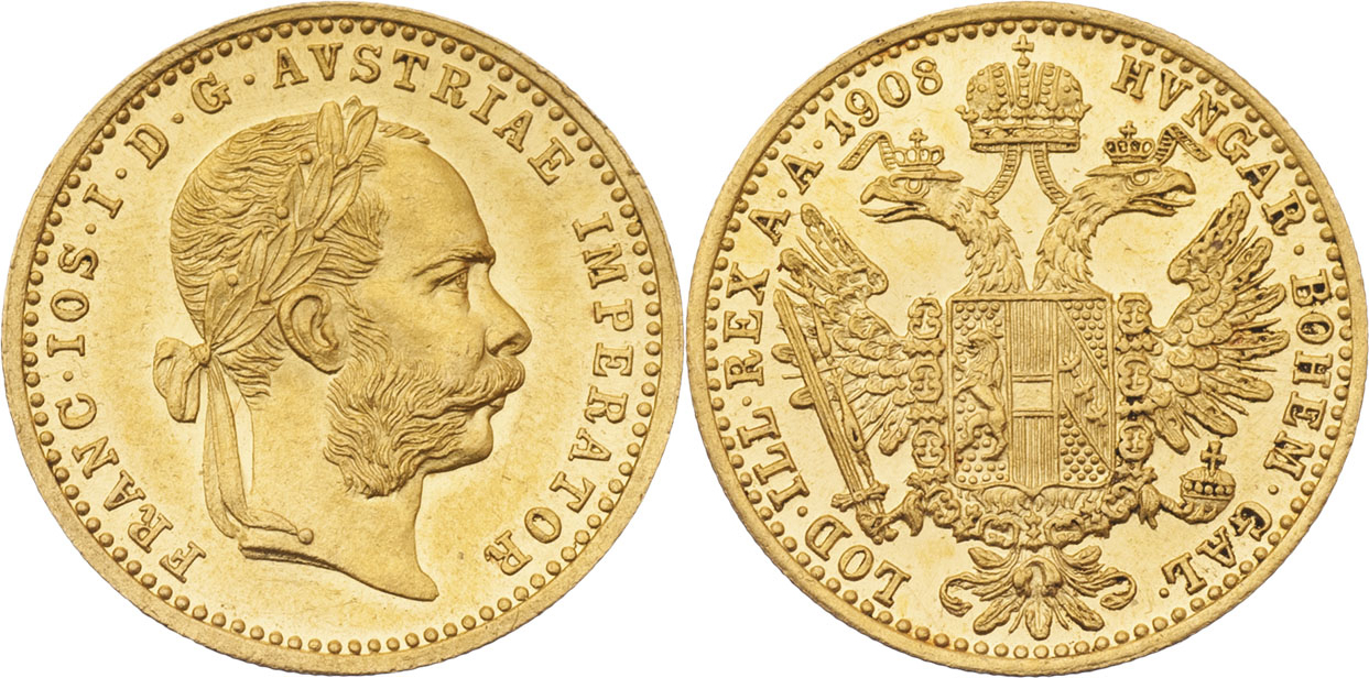 Dukát 1908, 3.491g, nep.rysky