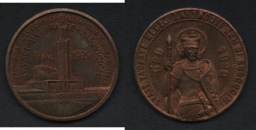 Svěcení zákl.kamene kostela sv.Václava 20.V.1929, Nesign., bronz 30 mm, Přib.722b, krásná patina, původní etue