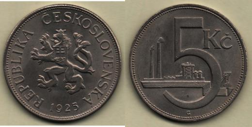 5 Koruna 1925, 10.127g, nep.hr., dr.rysky, pěkná patina