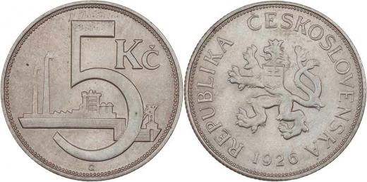 5 Koruna 1926, 9.992g, nep.hr., nep.rysky, patina, téměř