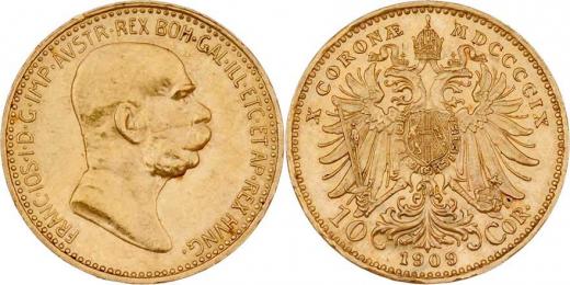 10 Koruna 1909 - Marschall, Schwartz, 3.386g, 3.384g, nep.hr., nep.rysky, obě téměř 2ks