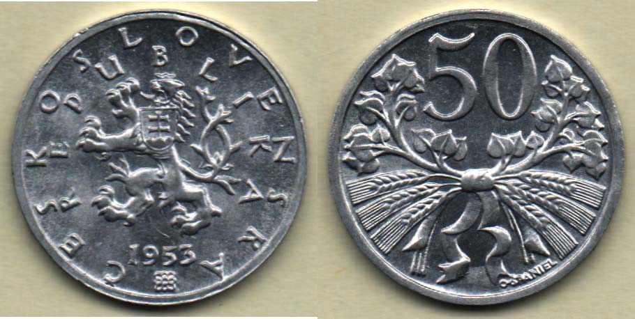 50 Haléř 1953, 0.662g, nep.hr. R!