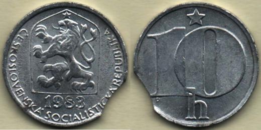 10 Haléř 1983 - zmetek - krajový střížek, dr.hr.