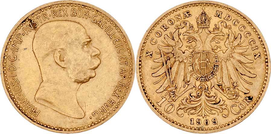 10 Koruna 1909 - Marschall, 3.383g, nep.hr., nep.rysky, skvrnka, patina