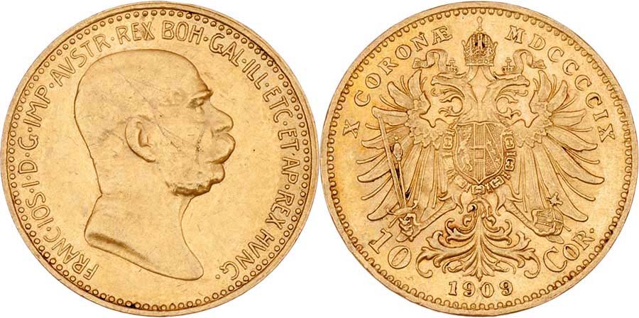 10 Koruna 1909 - Marschall, 3.380g, nep.hr., nep.rysky, pěkná patina