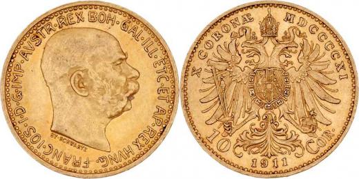 10 Koruna 1911 - Schwartz, 3.384g, nep.hr., nep.rysky, pěkná patina