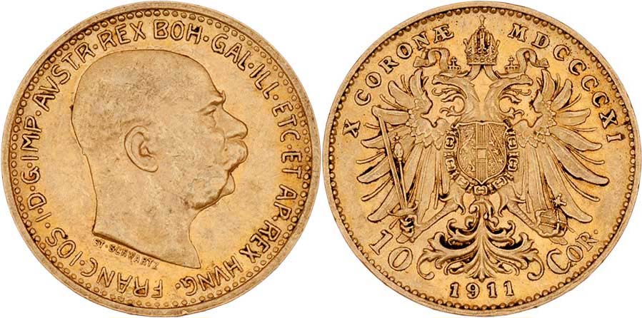 10 Koruna 1911 - Schwartz, 3.379g, nep.hr., nep.rysky, pěkná patina