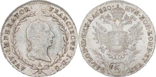 5 Krejcar 1820 A, 2.237g, pěkná patina, téměř