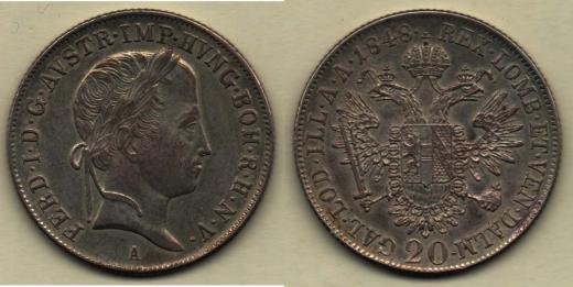 20 Krejcar 1848 A, 6.731g, nep.hr., nep.rysky, patina