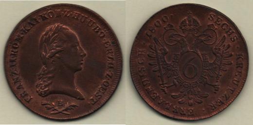 Cu 6 Krejcar 1800 B, 12.826g, nedor., patina, téměř