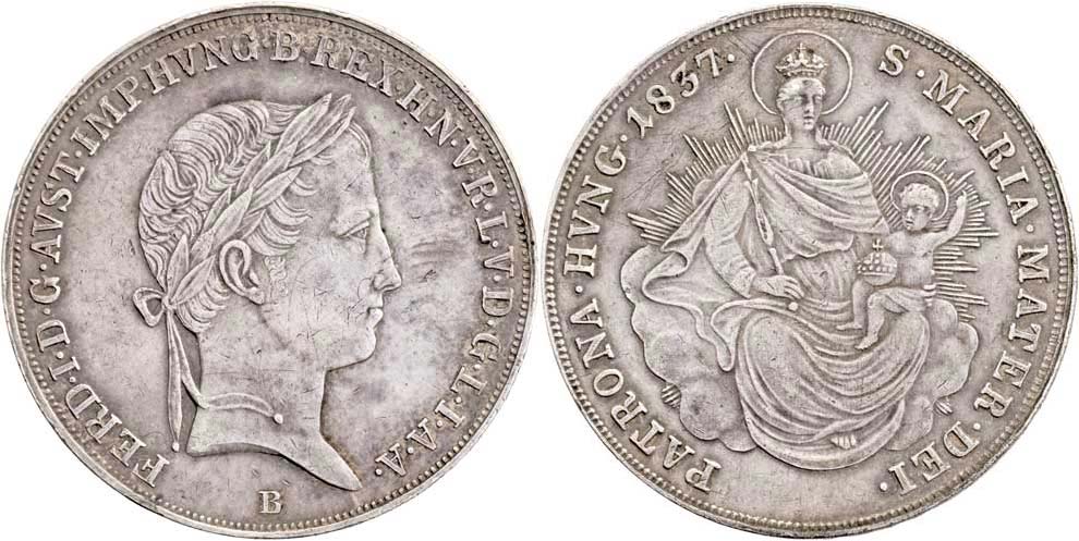 1/2 Tolar 1837 B - s madonou, 14.003g, nep.hr., nep.rysky, patina RRR!