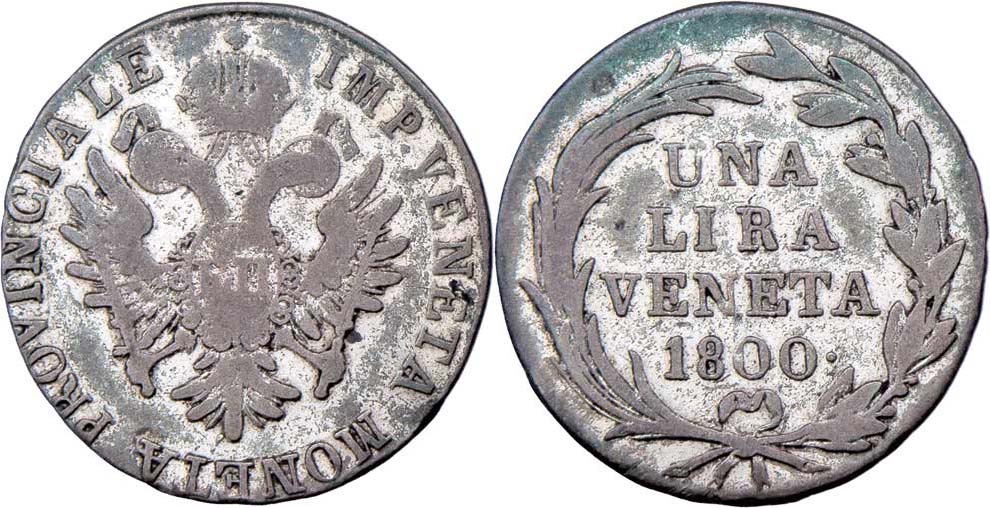 1 Lira 1800 - pro Benátky, P.30, 4.414g, patina R!
