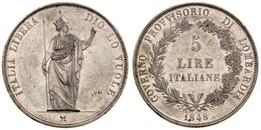 5 Lira 1848 M, Cr.22, 24.951g, nep.hr., dr.rysky, patina R!