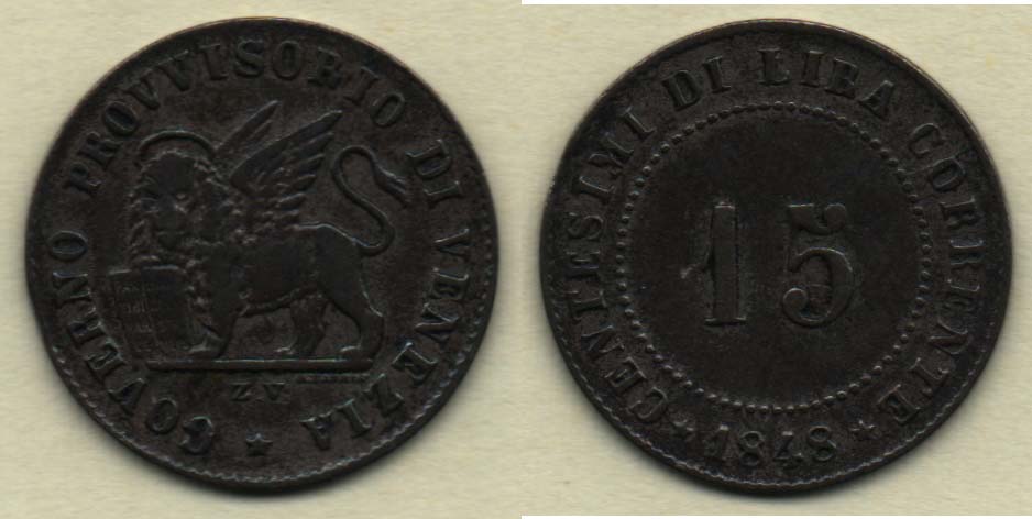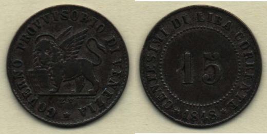 15 Centesimi 1848 ZV, Cr.184, 1.618g, dr.hr., dr.rysky, pěkná patina
