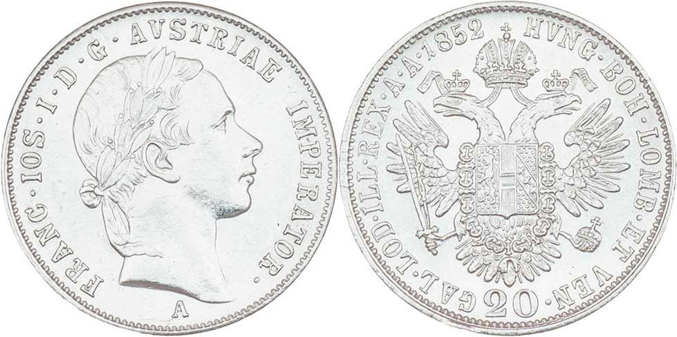 20 Krejcar 1852 A - hlava zprava, 4.311g, nep.hr., nep.rysky