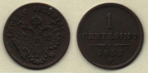 Centesimo 1852 V - menší typ, 1.039g, pěkná patina