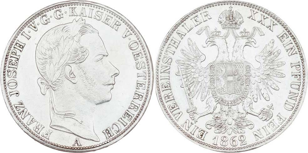 Tolar spolkový 1862 A, 18.480g, nep.hr., nep.rysky, téměř