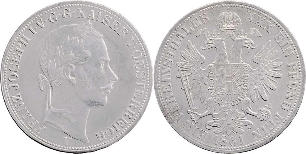 Tolar spolkový 1861 V, 18.495g, dr.škr., rysky R!