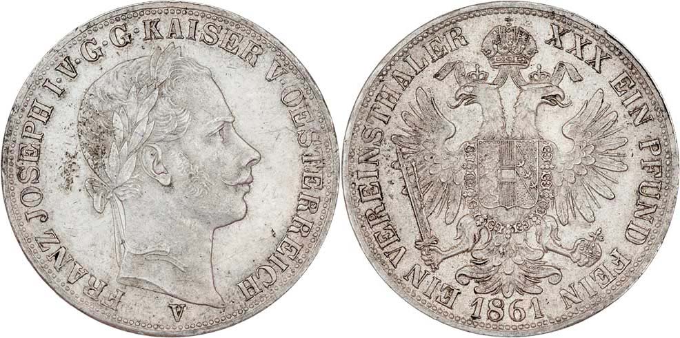 Tolar spolkový 1861 V, 18.477g, nep.hr., nep.rysky, pěkná patina, téměř R!