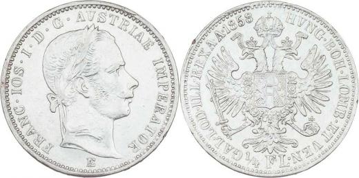 1/4 Zlatník 1858 E, 5.330g, nep.just., hr., vl.rysky