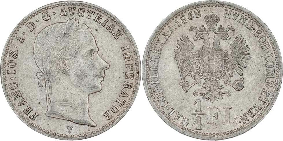 1/4 Zlatník 1862 V, 5.322g, nep.hr., dr.rysky, patina R!