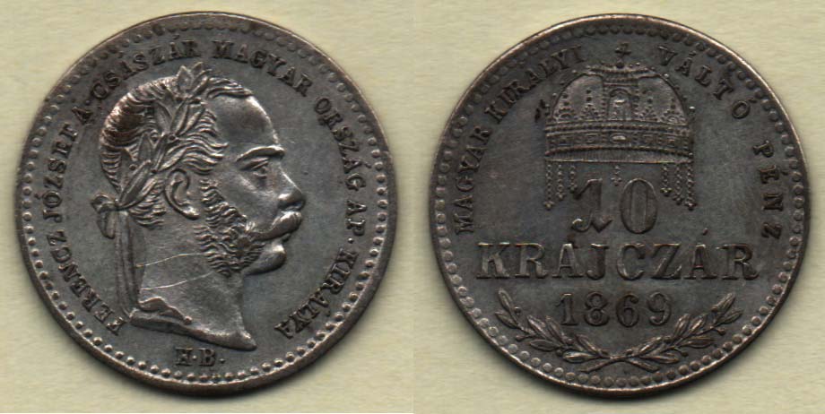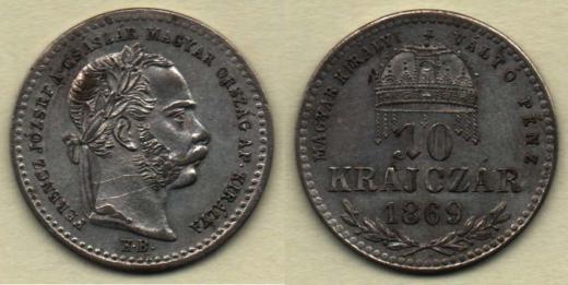 10 Krejcar 1869 KB - dlouhý opis, 1.663g, nep.hr., nep.rysky, pěkná patina
