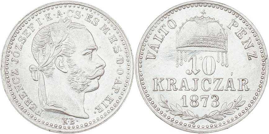 10 Krejcar 1873 KB, 1.613g, vada materiálu v reversu, nep.hr., nep.rysky, téměř R!