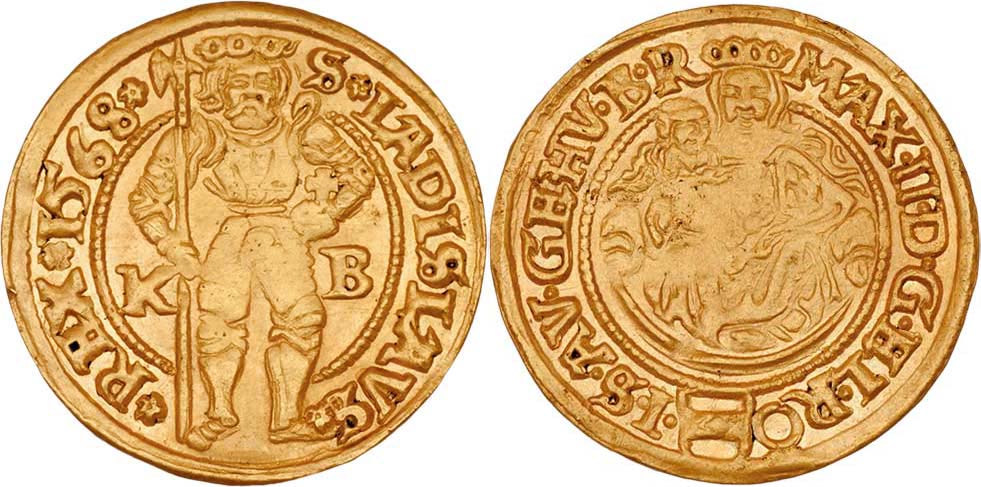 Dukát 1568 KB, Hal.201, Husz.973, 3.598g, nep.nedor., nep.dvojráz, nep.hr., patina, téměř