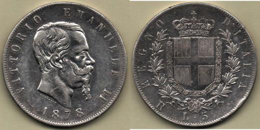 5 Lira 1878 R, Řím, KM.8.4, 24.913g, hr., dr.škr., rysky