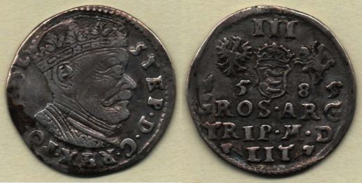 3 Groš 1585, Vilno, Kop.3377, Sa.5597 (2929), 2.292g, nedor., nep.dvojráz, skvrna, patina
