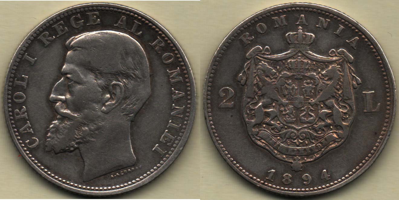 2 Lei 1894 bz, Brusel, KM.25, 9.841g, dr.hr., dr.rysky, pěkná patina R!