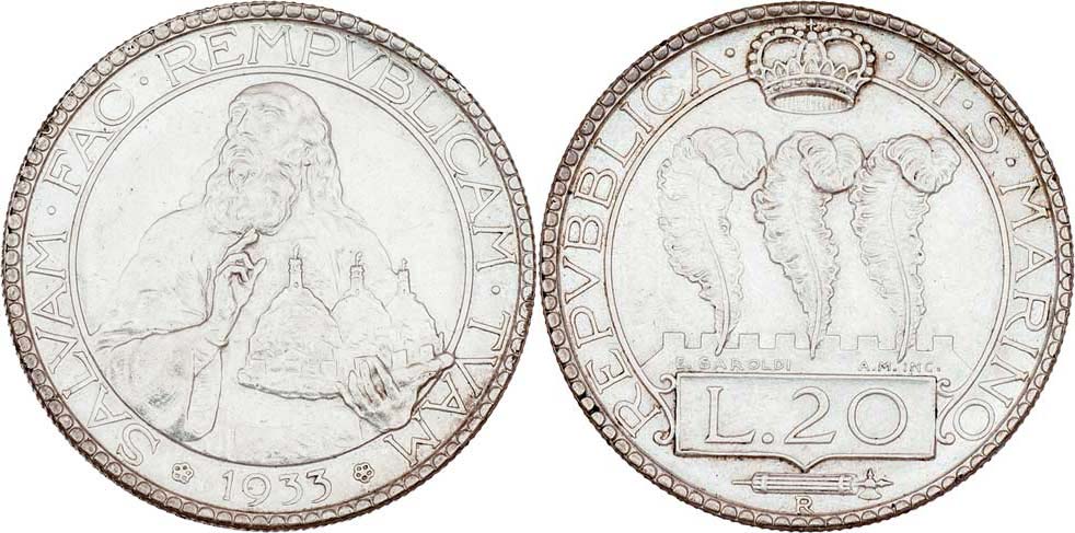20 Lira 1933 R, KM.11 (pouze 10.000 ks), 14.972g, nep.hr., nep.rysky, téměř R!