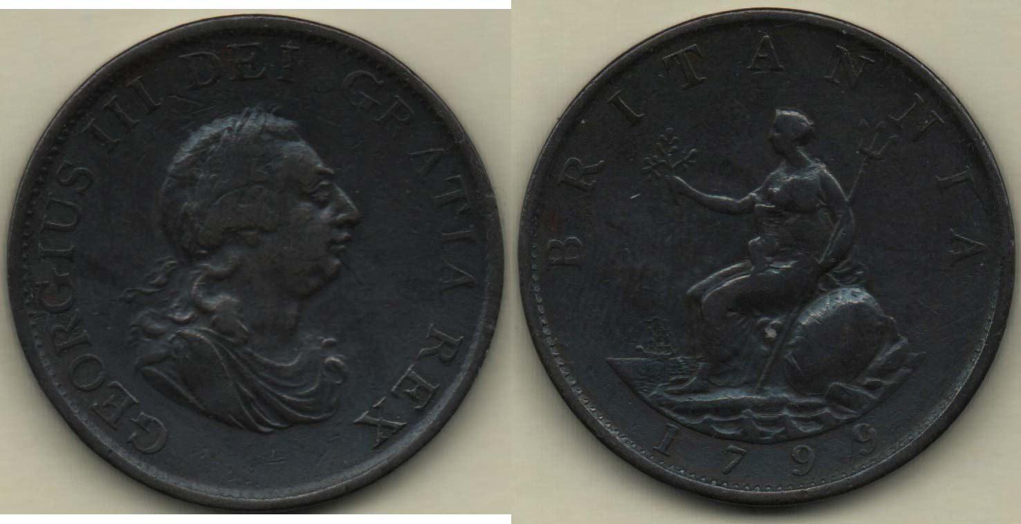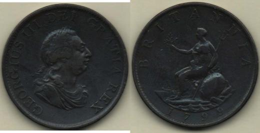1/2 Penny 1799, KM.647, 11.762g, dr.hr., dr.rysky, pěkná patina