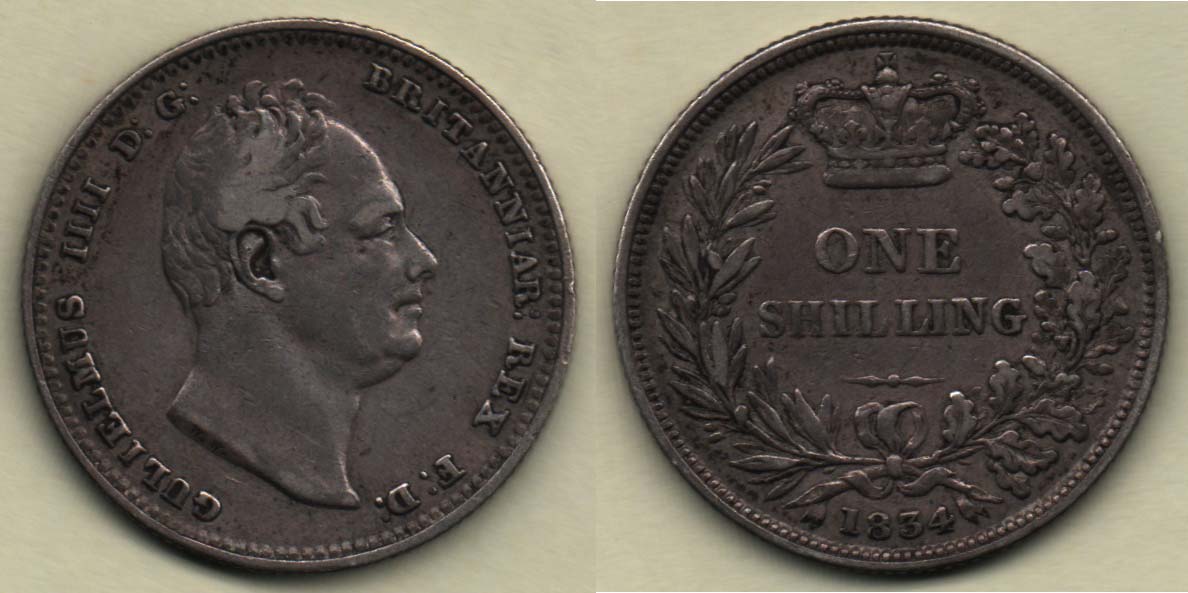 Shilling 1834, KM.713, 5.578g, dr.hr., dr.rysky, pěkná patina