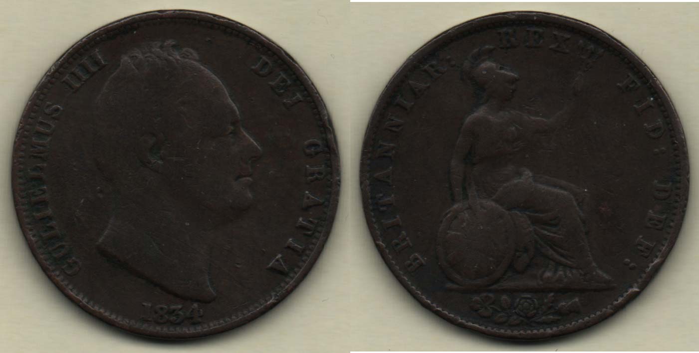 1/2 Penny 1834, KM.706, 8.866g, hr., dr.rysky, pěkná patina