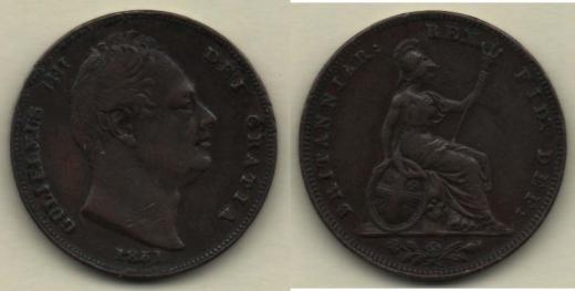 Farthing 1831, KM.705, 4.761g, dr.hr., dr.rysky, skvrny, patina