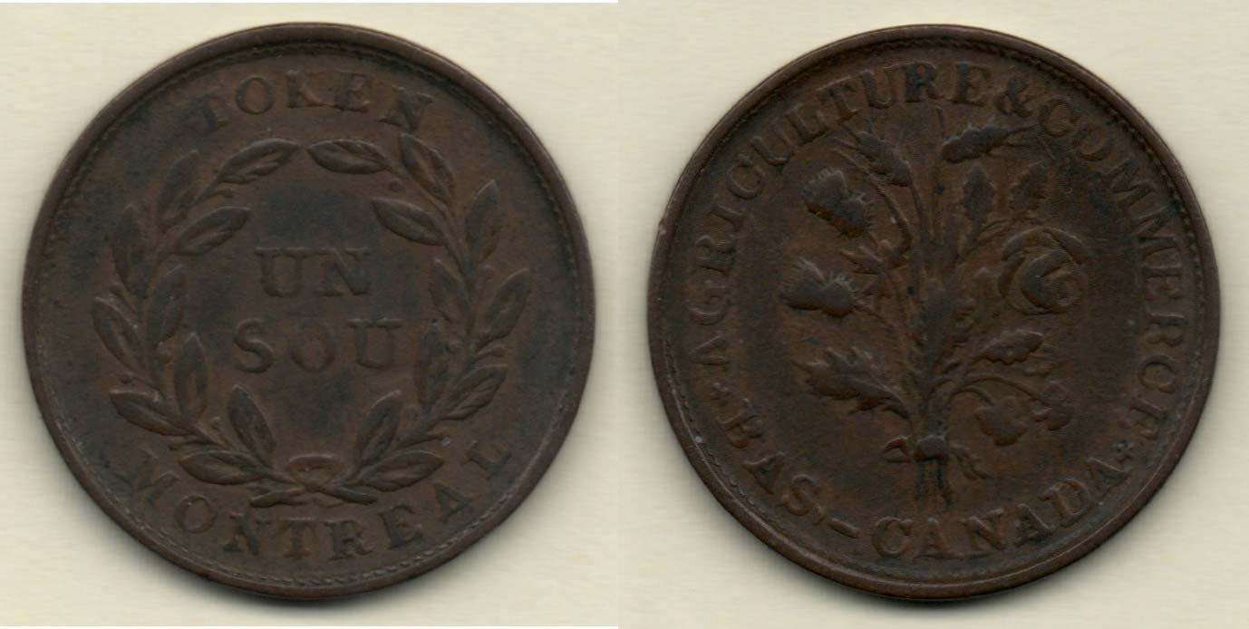 Montreal, Agriculture & Commerce Bas. - 1 Sou b.l. (1837-1838), KM.Tn5, 6.471g, dr.hr., dr.rys., pat. R!