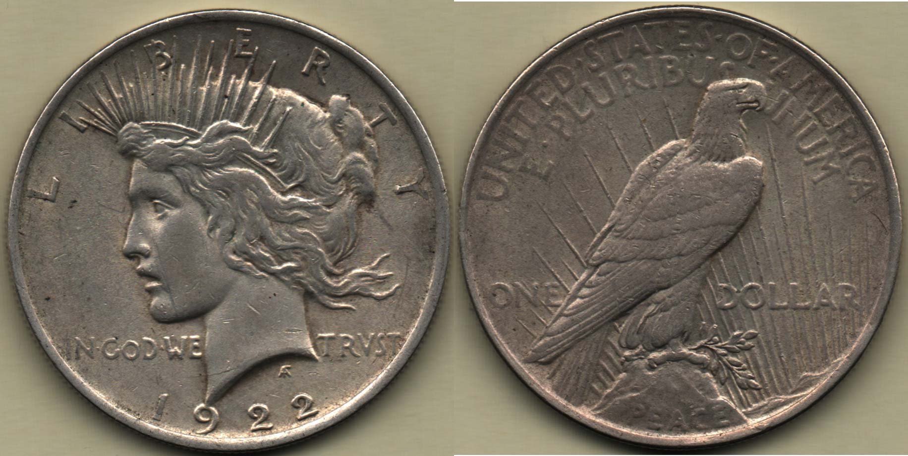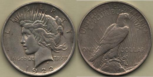 Dolar 1922 - Mírový, KM.150, 26.666g, dr.hr., rysky, patina