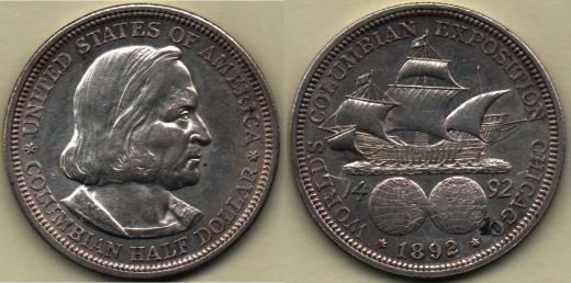 1/2 Dolar 1892 - Kolumbovská výstava, KM.117, 12.544g 12.491g, nep.hr., dr.rysky, skvrnky, patina