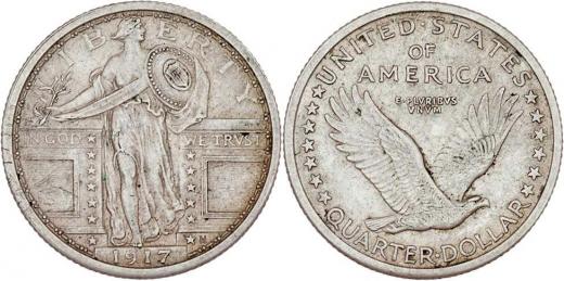 25 Cent 1917 - stojící Liberty, KM.141, 6.234g, nep.hr., nep.rysky, pěkná patina R!