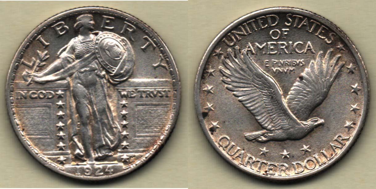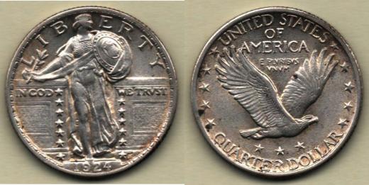 1/4 Dolar 1924 - stojící Liberty, KM.145, 6.286g, nep.hr., nep.rysky, pěkná patina