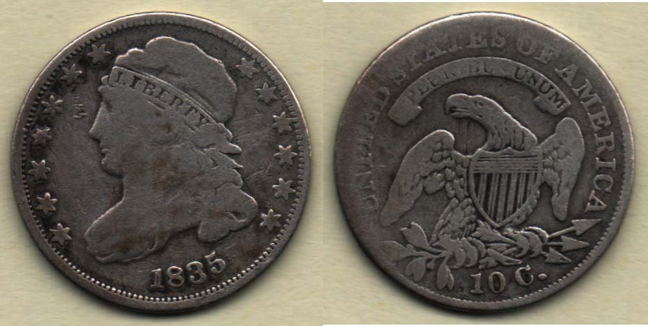 10 Cent 1835 - hlava Liberty, KM.48, 2.531g, nedor., patina