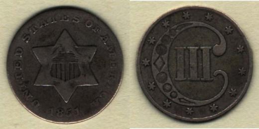 3 Cent 1851 - hvězda (Ag), KM.75, 0.763g, nep.hr., nep.rysky, pěkná patina
