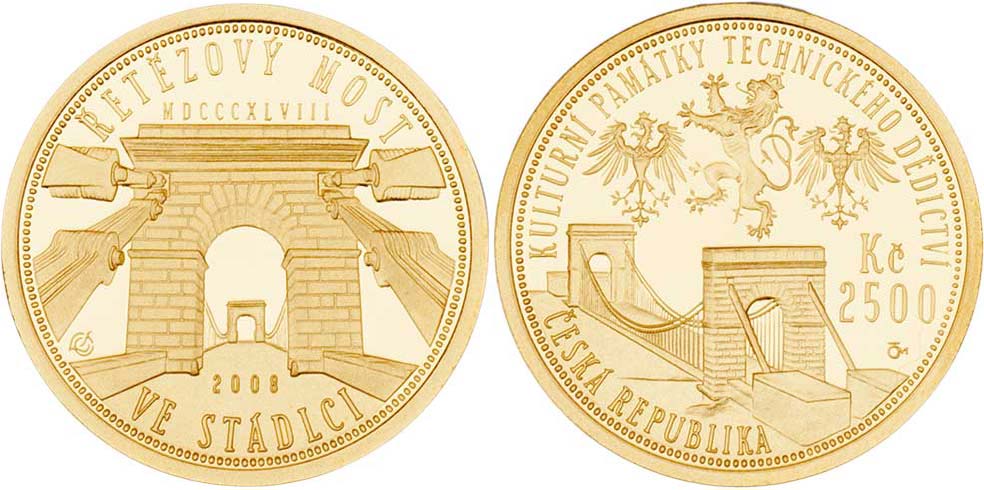 2500 Koruna (1/4 Unce) 2008 - Řetěz. most ve Stádlci, 7.804g, kapsle, etue, karta