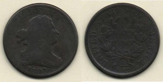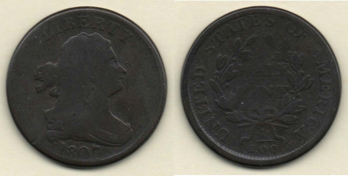1/2 Cent 1807 - hlava Liberty, KM.33, 5.498g, dr.hr., dr.škr., rysky, pěkná patina R!