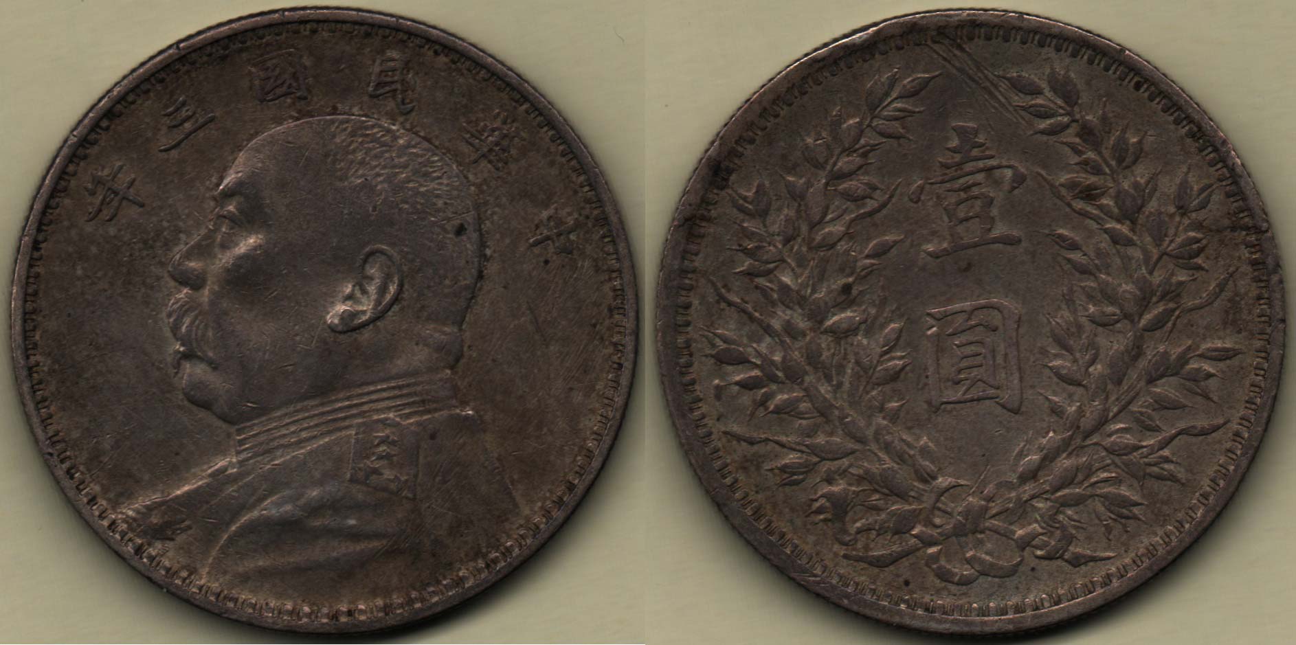 Dolar, rok 3 (= 1914), generál Yuan Š-kchai, Y.329, 26.788g, hr., škr., rysky, pěkná patina