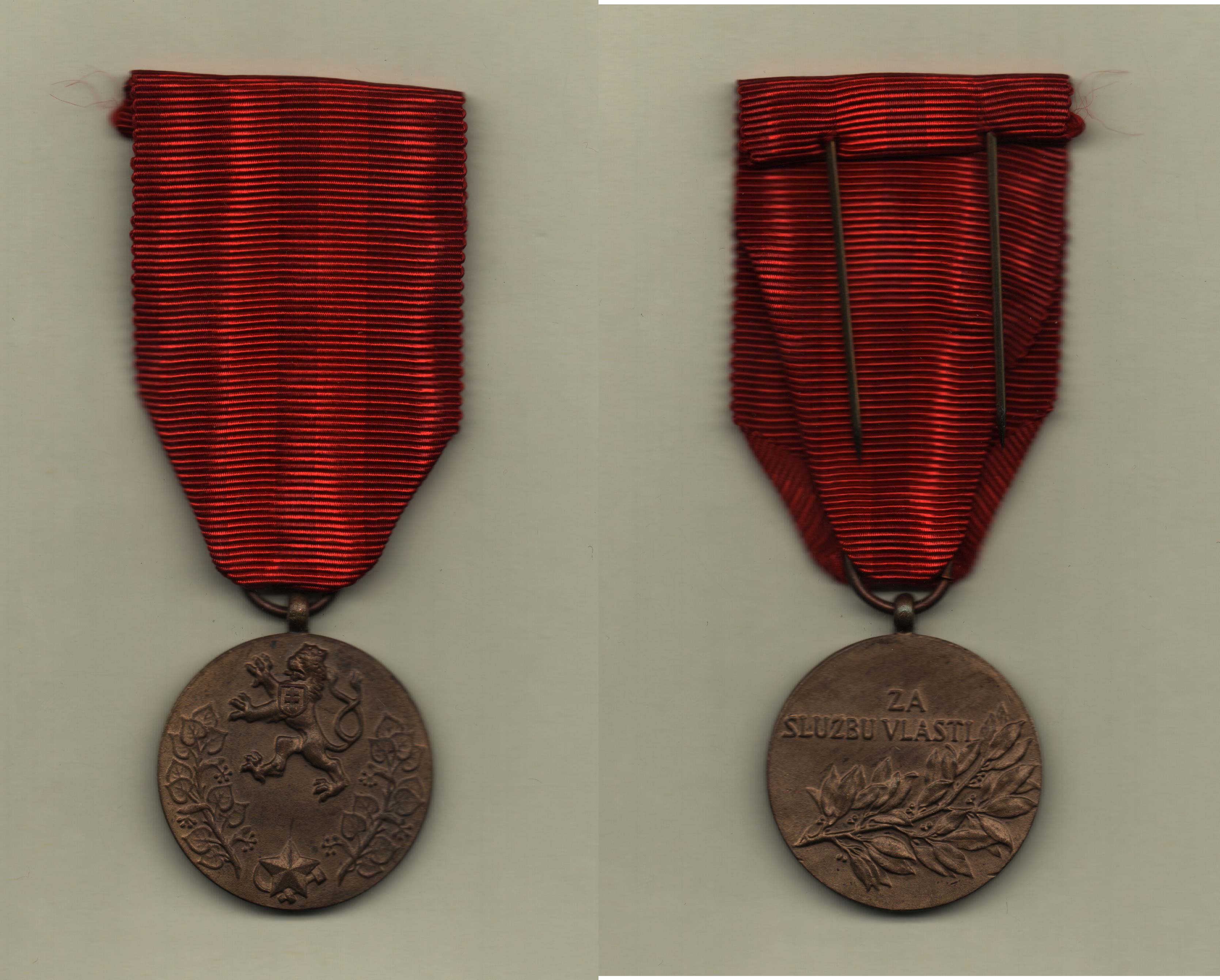 Medaile Za službu vlasti ČSR, VM.44-I-A (základní typ s hvězdou pod státním znakem), poškoz. původní etue