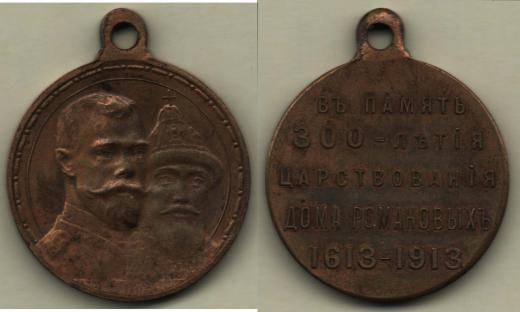 Pamětní medaile na 300 let vlády rodu Romanovců 1913, OK.281, Wer.129, bez stuhy