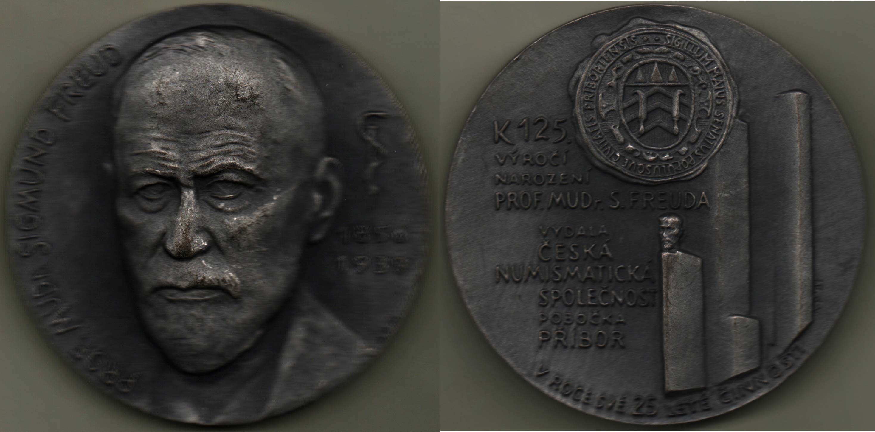 Peter - Prof.MUDr.Sigmund Freud (1856 -1939) 1981 - portrét, Aeskulapova hůl, opis / pomník, měst.pečeť, nápisy, Sign., postř.bronz 60mm, BK.3 (20ks) RR!