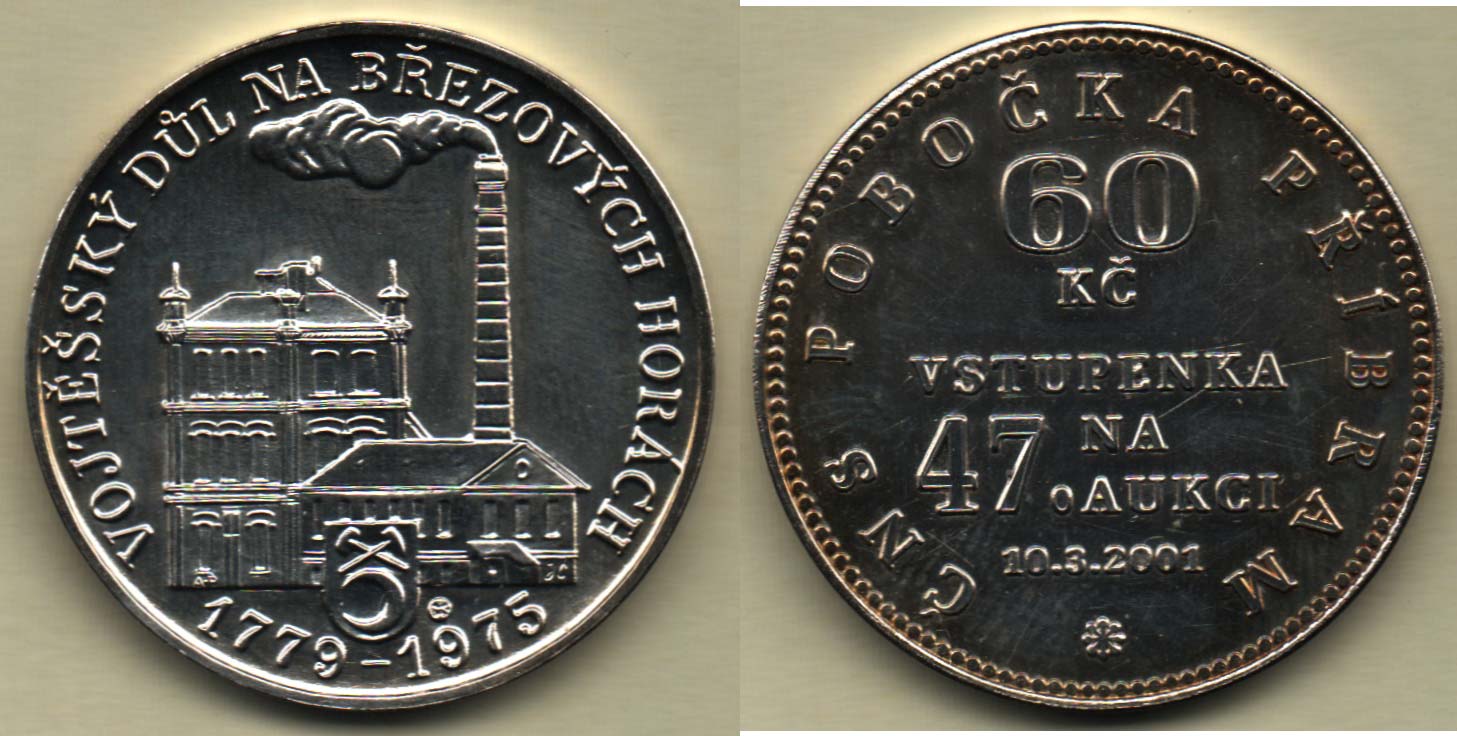 Vstupenka na 47.aukci 10.3.2001 - replika medaile dolu Vojtěch 1975 / 6-řádkový nápis a opis, Nesign., Ag925, 27mm, 13.559g, pouze 30ks, vl.škr. v Rv. RR!
